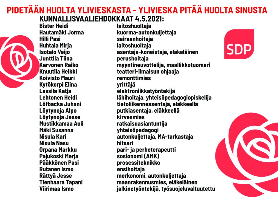 Jaa tämä artikkeli Facebook Twitter LinkedIn Edellinen artikkeli: Vappu 2021 Seuraava artikkeli: Kuntavaaliehdokkaat